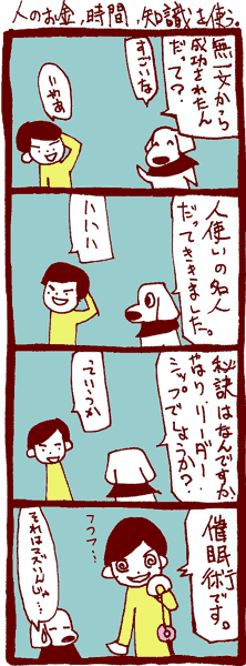 優れた経営者とは「他人のお金、時間、知識を使える人」だと思います。 もし、自分にお金が無ければ、借りたり出資してもらえばいいのです。 もし、時間が足りなければ、人を雇えばいい。 もし、知識が無ければ、優れた専門家の知識を借りればいい。 だから、お金が無くても、時間が足りなくても、専門知識が無くても経営者になれるのです。 ところが多くの人は、お金が無いことや時間が無いことや、知識が無いことを独立・起業が出来ない理由にしています。 変な感じですね。 じゃあ、本当に何にもいらないのかというとやっぱりそういう訳にはいきません。 「強力なリーダーシップ」が必要なのです。 人からお金や時間や知識を引き出すには、優れたリーダーでなければならないのです。 人を動かす能力が必要不可欠です。 そしてこの能力を磨き、身に付けた人はなかなかいません。 これこそ、僕が起業するみなさんに身に付けてほしい能力です。 ビジネススクールでは教えてくれない成功に不可欠な能力です。 最近ビジネスプロデューサーという役割がメジャーになってきたようですが、これこそまさに「人のお金、時間、知識を使える人」なのではないでしょうか。 ■2005年からのツッコミ■ 特になし。 付け加えるなら、自分のプランに強力に巻き込むタイプと、人から応援されるタイプの二種類の人がいるということですね。これは、その人の性質で決まるものですが、それぞれに危険もあります。 前者は、罪悪感から何か成し遂げて愛してもらおうとしているために、人をコントロールしようとして人間関係でつまづくかもしれません。 後者は、依存的になる危険があります。そしていつの間にか自分が望まない方向に計画が進んでしまうかもしれません。 そういったことだけ気をつければよいでしょう。