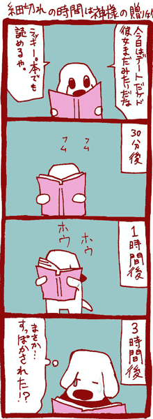 細切れの時間は発生してしまいます。 電車などでの移動時間や待ち合わせに相手が遅れてくる時の待ち時間は代表的なものです。大体、いろいろ意味の無いことを考えて過ぎてしまいます。 こういった細切れの時間が発生したときの為に何をするかを予め決めておくと時間が有効に使えます。 その時になって、何しよう?などと考えていてはダメです。 『自分の目標の達成に役立つ何か』をすることを決めておくのです。 予め決めておくことで、細切れの時間が「神様からの貴重な贈り物」になるのです。 僕も時々遅れるので人のことはあまり言えませんが、待たされて何もすることが無いとイライラします。特に、自分が急いで仕事を切り上げて出てきた時には忙しいのにこんちくしょーと思いますね。 相手が待ち合わせに遅れてきたときなどには、相手の時間の感覚がどうとか言う話は置いておいて、こういうときにイライラするよりも「よかった、本を読む時間が出来た」などと思う方がよほど精神的に良いです。 僕は、①本を読む、②今月の目標、ミッションステートメントを見る のいずれかをすると決めています。 だから必ずデカイ鞄に本と手帳を入れて持ち歩いています。 僕は、基本的に家で本を読むことがありません。家にいるとパソコンで仕事をしているか、ゲームをしているか、犬と遊んでいるかのどれかです。 車の雑誌なんかを見ることはあるけれど、どうしても家で役立つ本を読む気になれないのです。電車と待ち時間は僕の貴重な読書タイムになっています。 ■2005年からのツッコミ■ これは確か、『中谷影宏の時間塾』を読んで書いたコラムだったと思います。 「何をするかを予め決めておく」はそのまんまパクリです。すみません。